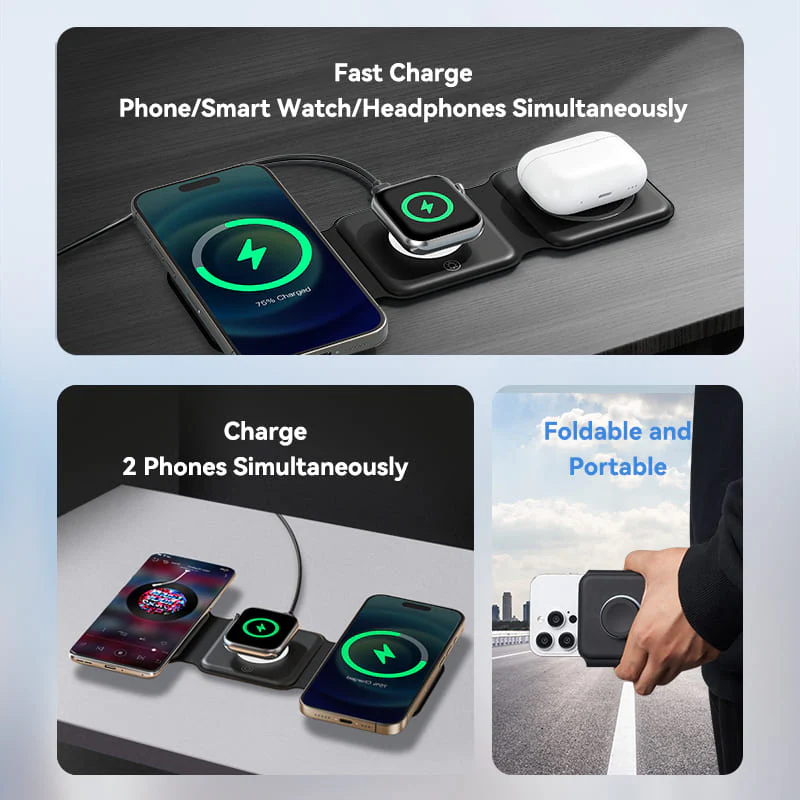 ✅ All-in-One Convenience – Charge phone, watch, and earbuds simultaneously