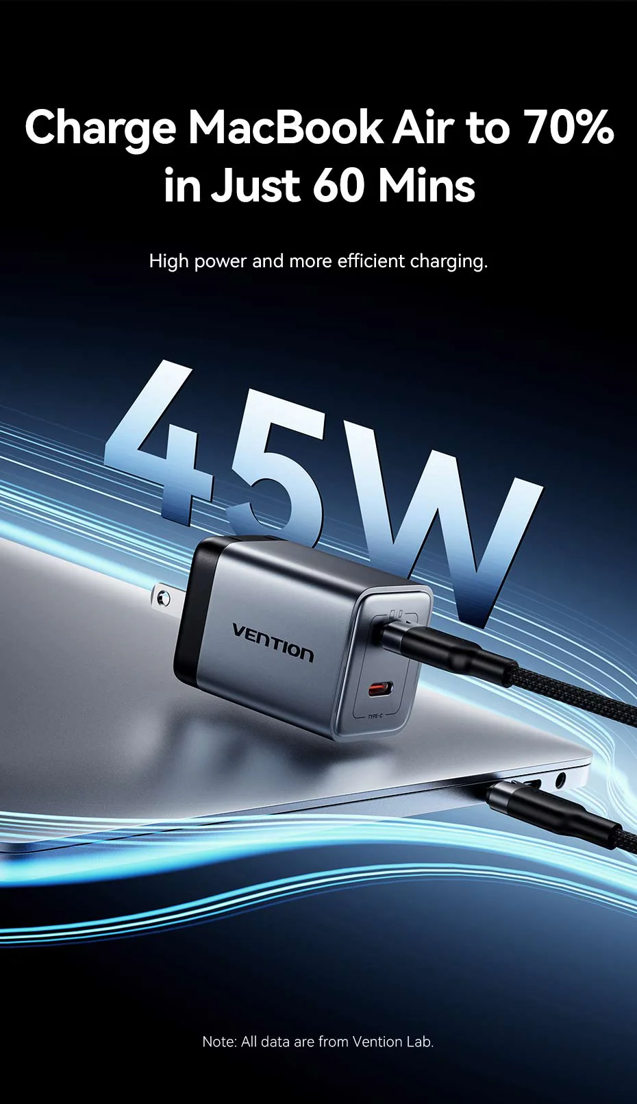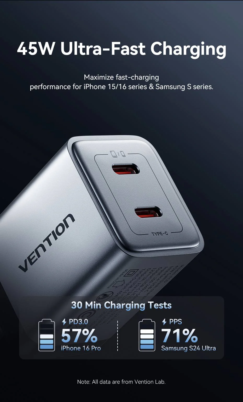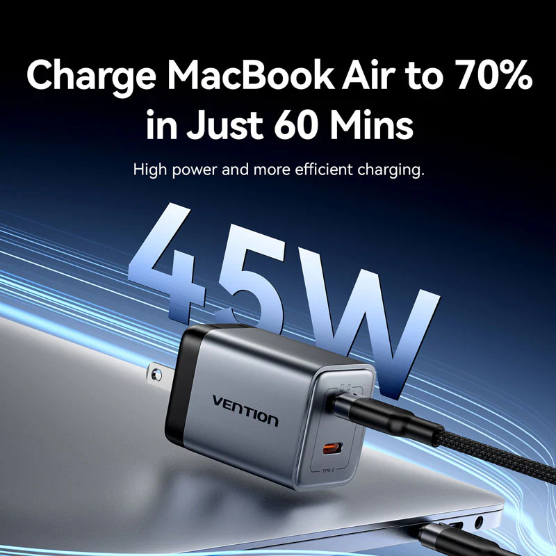 Upgrade to Vention’s 45W GaN Charger today for faster, safer, and smarter charging! 🚀