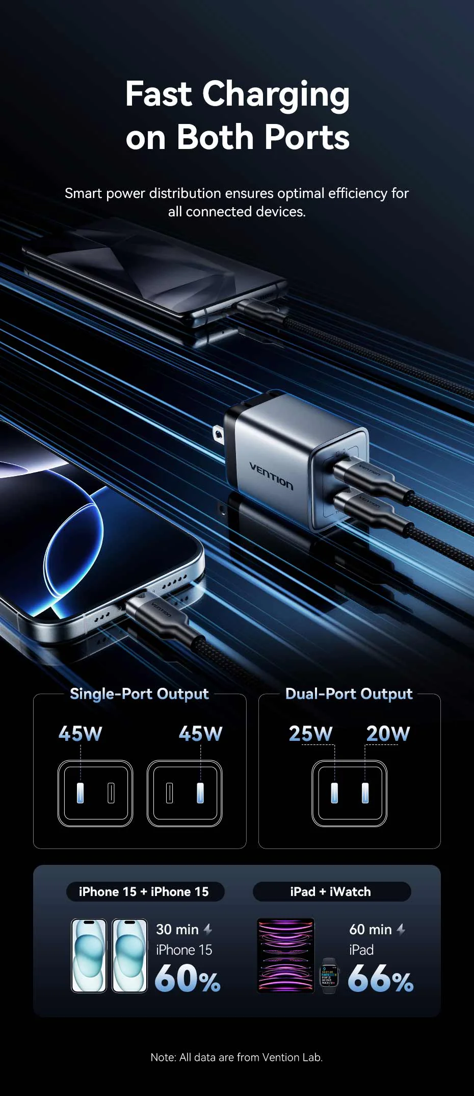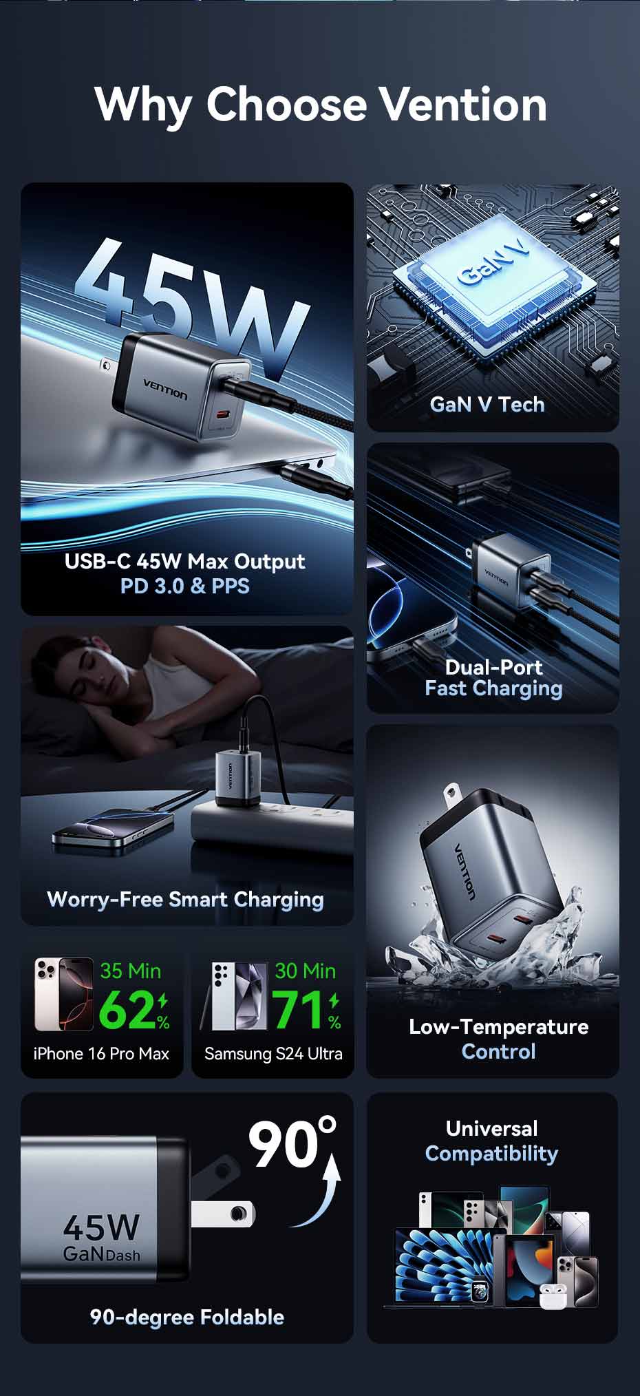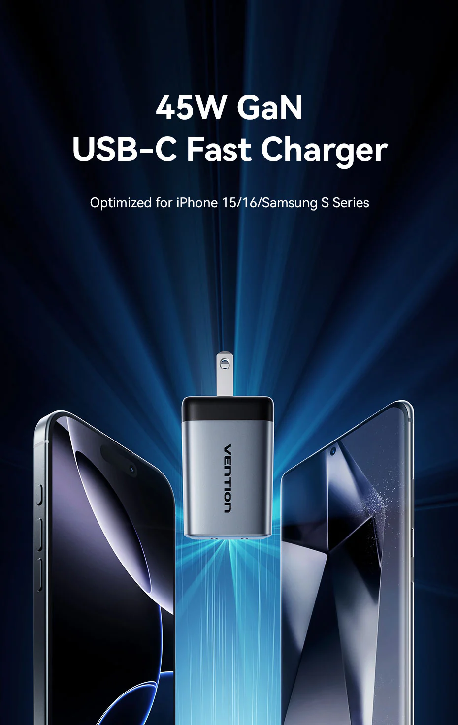 Upgrade to Vention’s 45W GaN Charger today for faster, safer, and smarter charging! 🚀