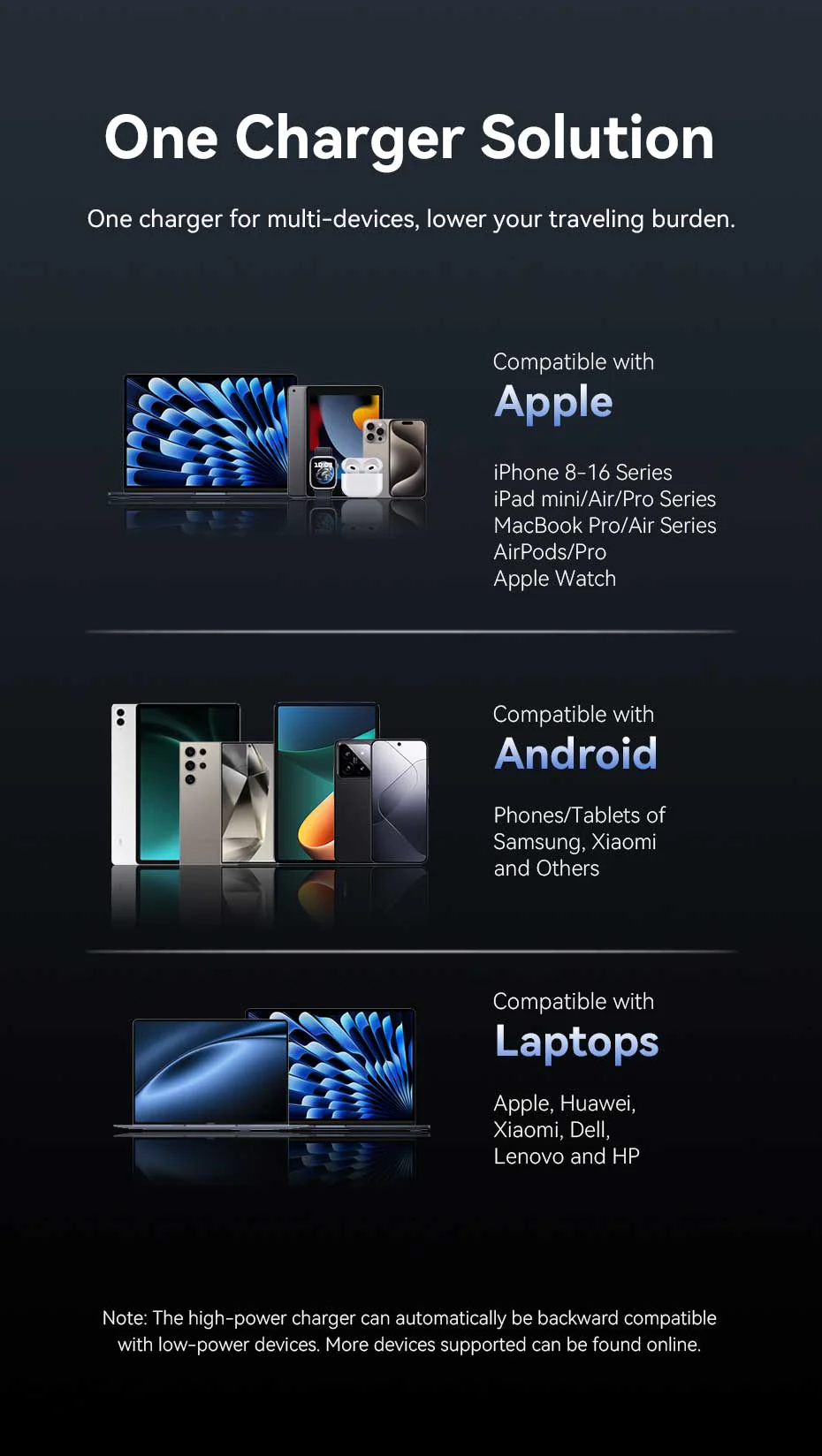 - Supports PD 3.0 & PPS for adaptive fast charging.