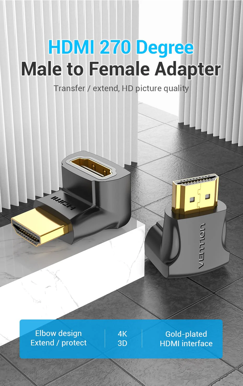 The Vention HDMI 270° Male to Female Adapter is a versatile and high-performance solution for extending and adjusting HDMI connections. Designed for 4K@60Hz video output, this adapter ensures crystal-clear visuals and lag-free audio while offering flexible 270-degree rotation for easy cable management. Whether you’re setting up a home theater, gaming console, or office workstation, this adapter provides seamless connectivity without compromising signal quality.