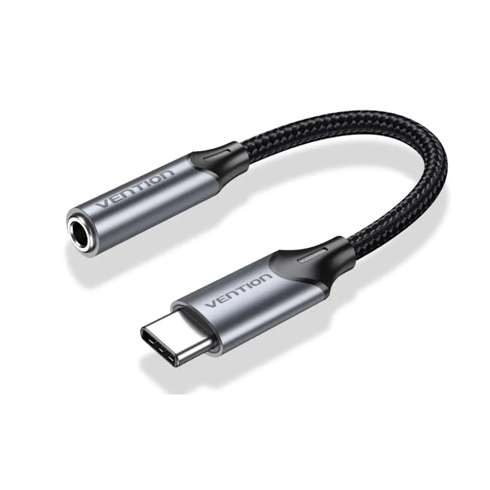 VENTION BGMHF USB-C to 3.5mm Headphone Jack Adapter with DAC Chip – High-Fidelity Audio, In-Line Mic & Volume Control, Aluminum Alloy Braided Cable for Android Phones, Laptops (Gray, 1 Meter)