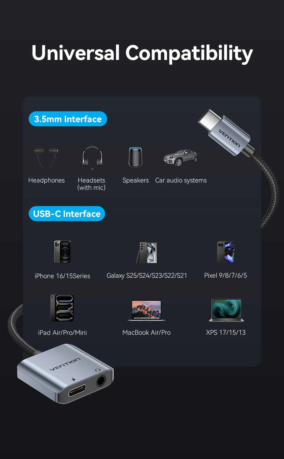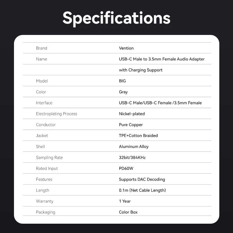 Package includes the adapter and premium gift-ready packaging. Backed by Vention’s 12-month warranty and lifetime technical support.