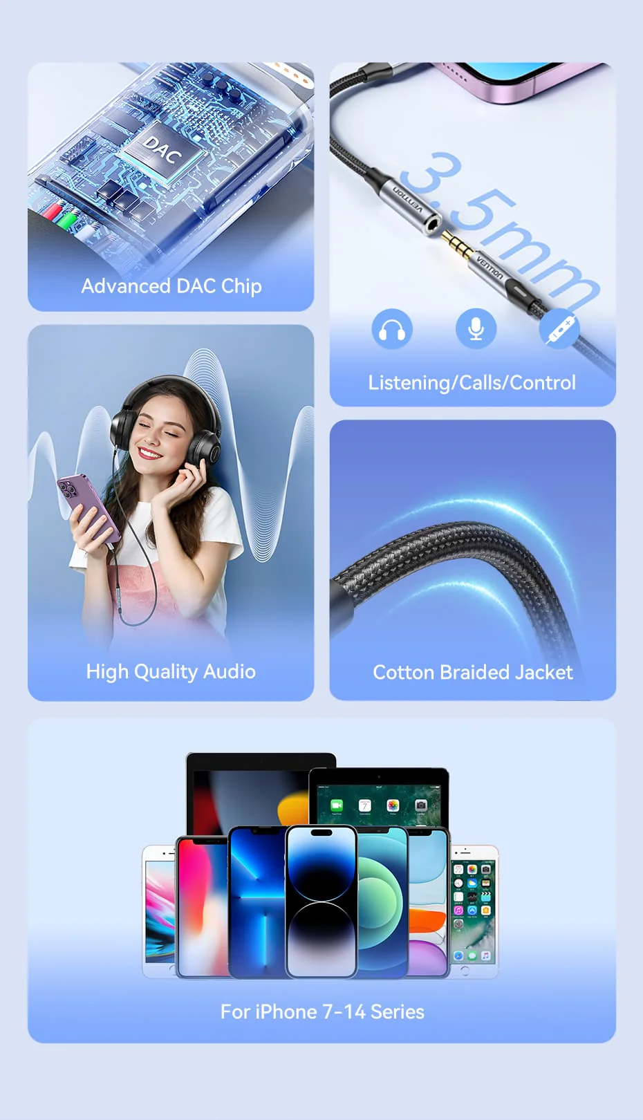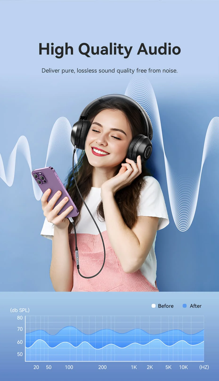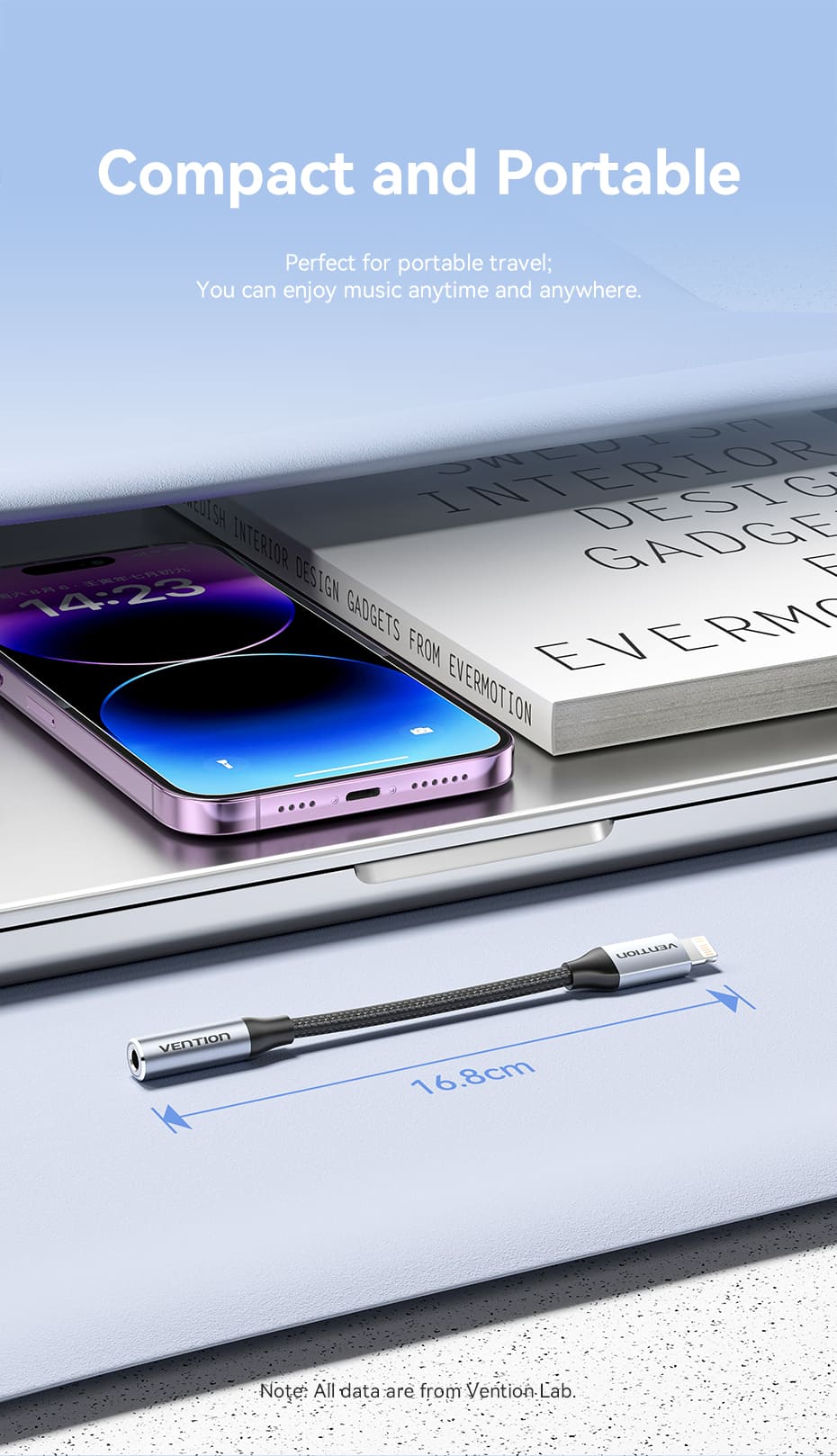 The Vention BMBHA Lightning to 3.5mm Audio Adapter bridges the gap between your iPhone (Lightning port) and traditional 3.5mm audio devices, such as car stereos, headphones, or home speakers. Designed for audiophiles and daily commuters, this adapter ensures high-fidelity sound reproduction with a 48KHz@16bit sampling rate, so you enjoy every note without compromise.