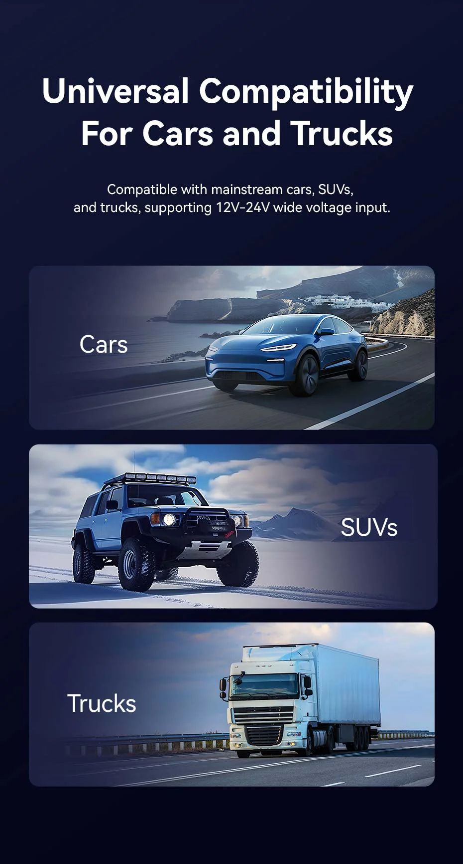 🔹 Space-Saving Design – Fits snugly in any 12V/24V car socket without blocking adjacent ports.