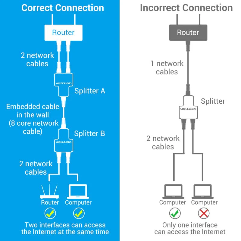 No, it only splits the physical connection. Both devices will share the same IP unless configured via a router. - Does it work with Gigabit Ethernet (1000Mbps)?