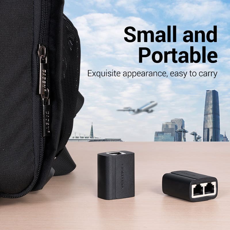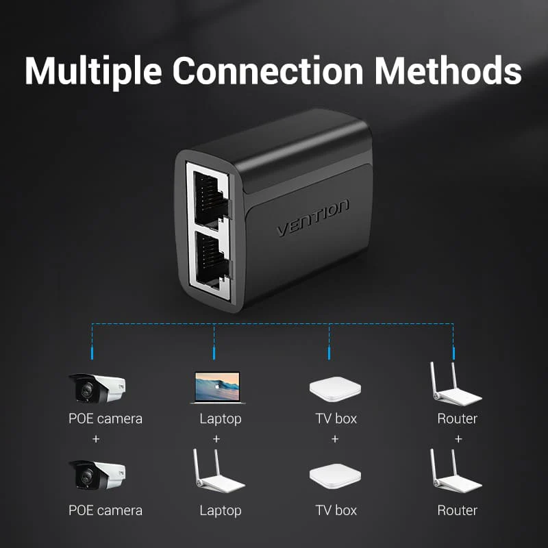 VENTION IPTB0 RJ45 Splitter Adapter – 1 to 2 Port Ethernet Splitter, 100Mbps High-Speed Internet Sharing, Plug & Play, Metal Shielded, Gold-Plated Connectors for Stable Connection (Black)