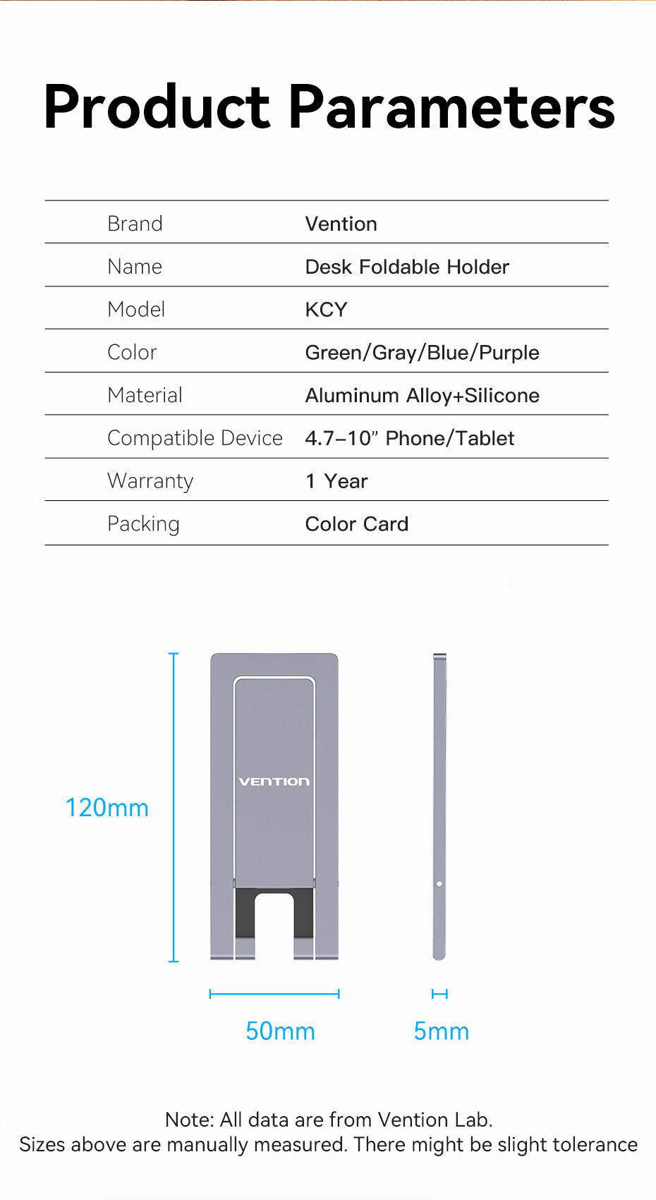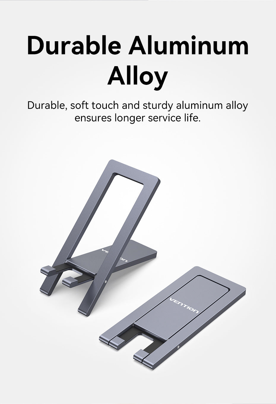 VENTION KCYH0 Portable Phone Stand – Ultra-Thin, Foldable Aluminum Alloy (Gray)