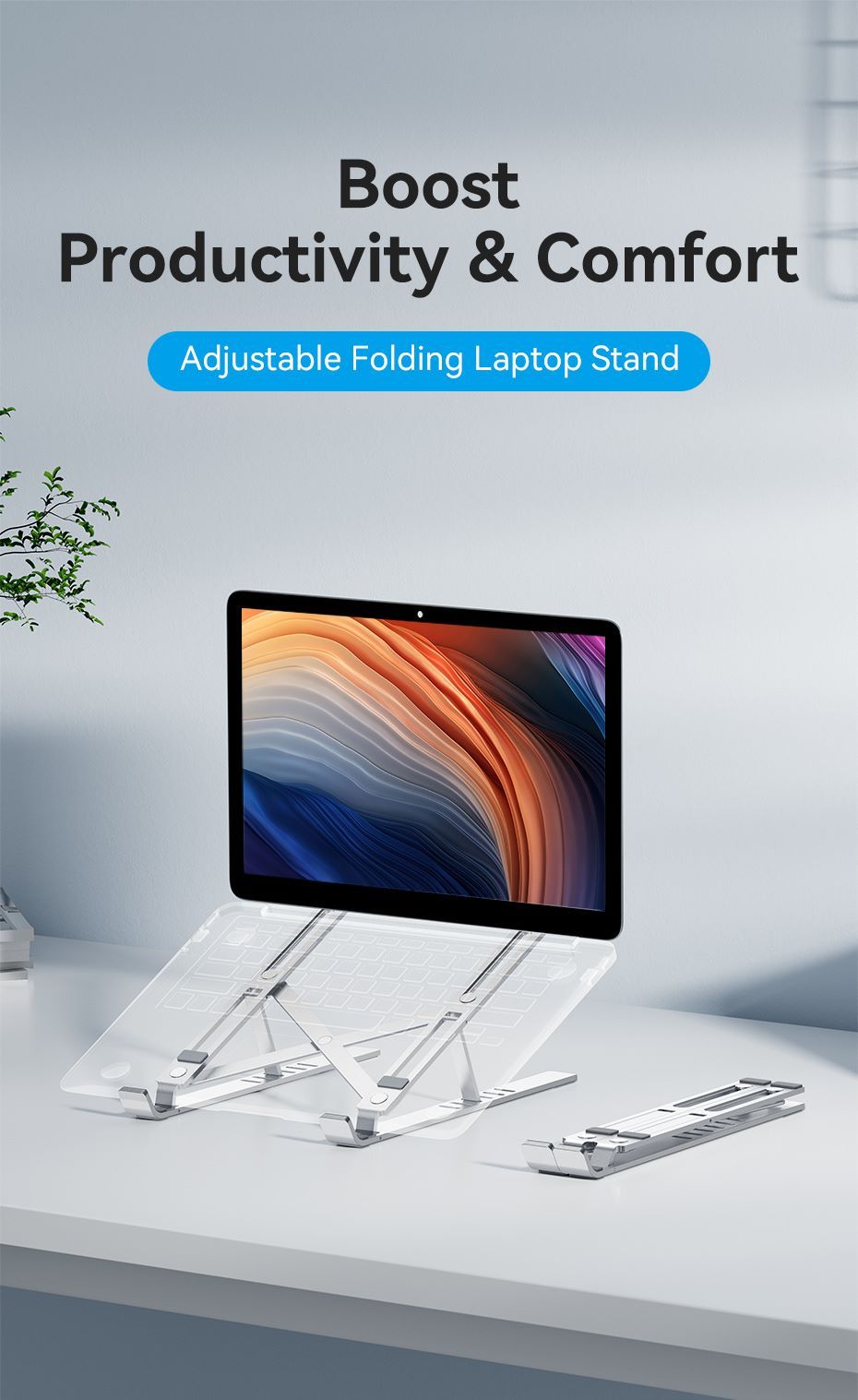 The Vention KDMI0 Foldable Laptop Stand is designed for professionals, students, and gamers looking for ergonomic comfort and portability. Made from high-quality aluminum alloy, this stand provides stability, durability, and a premium aesthetic.