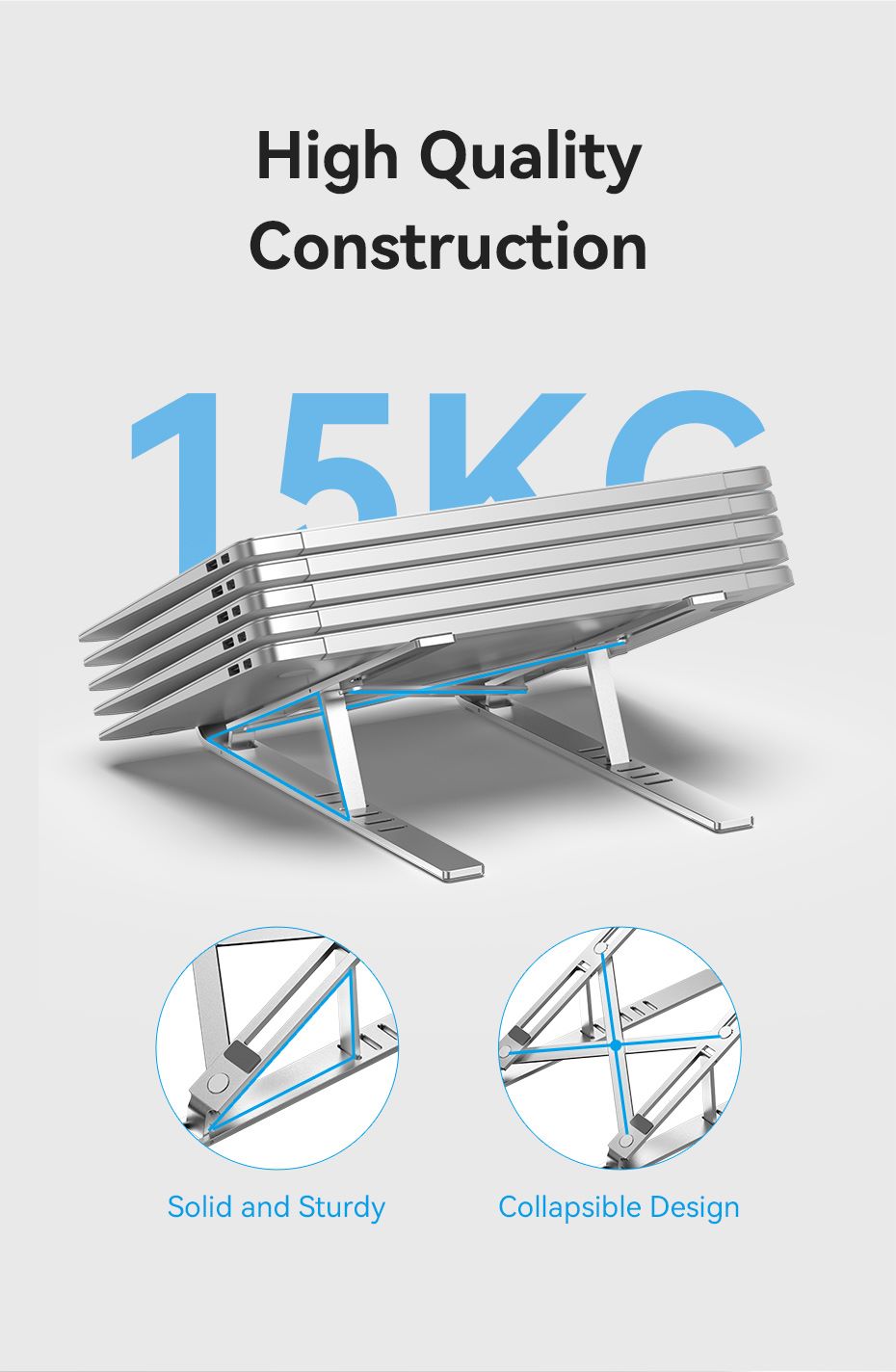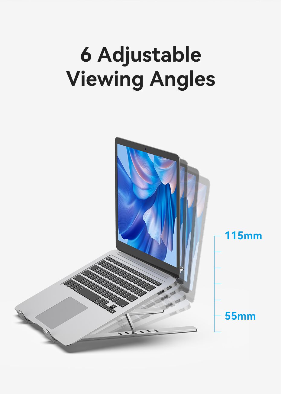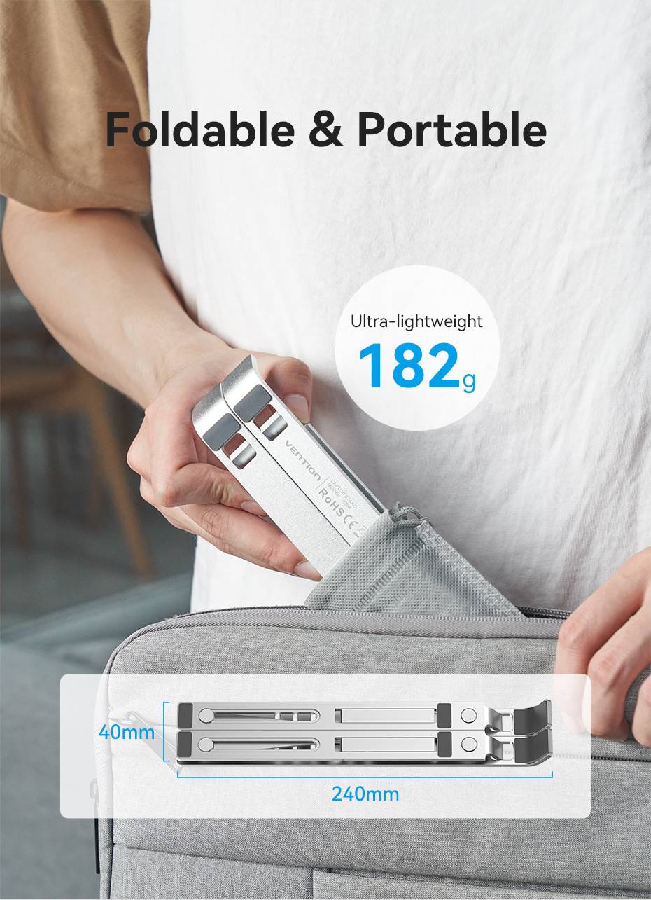 VENTION KDMI0 Foldable Laptop Stand – Silver Aluminum Alloy, 6-Level Adjustable