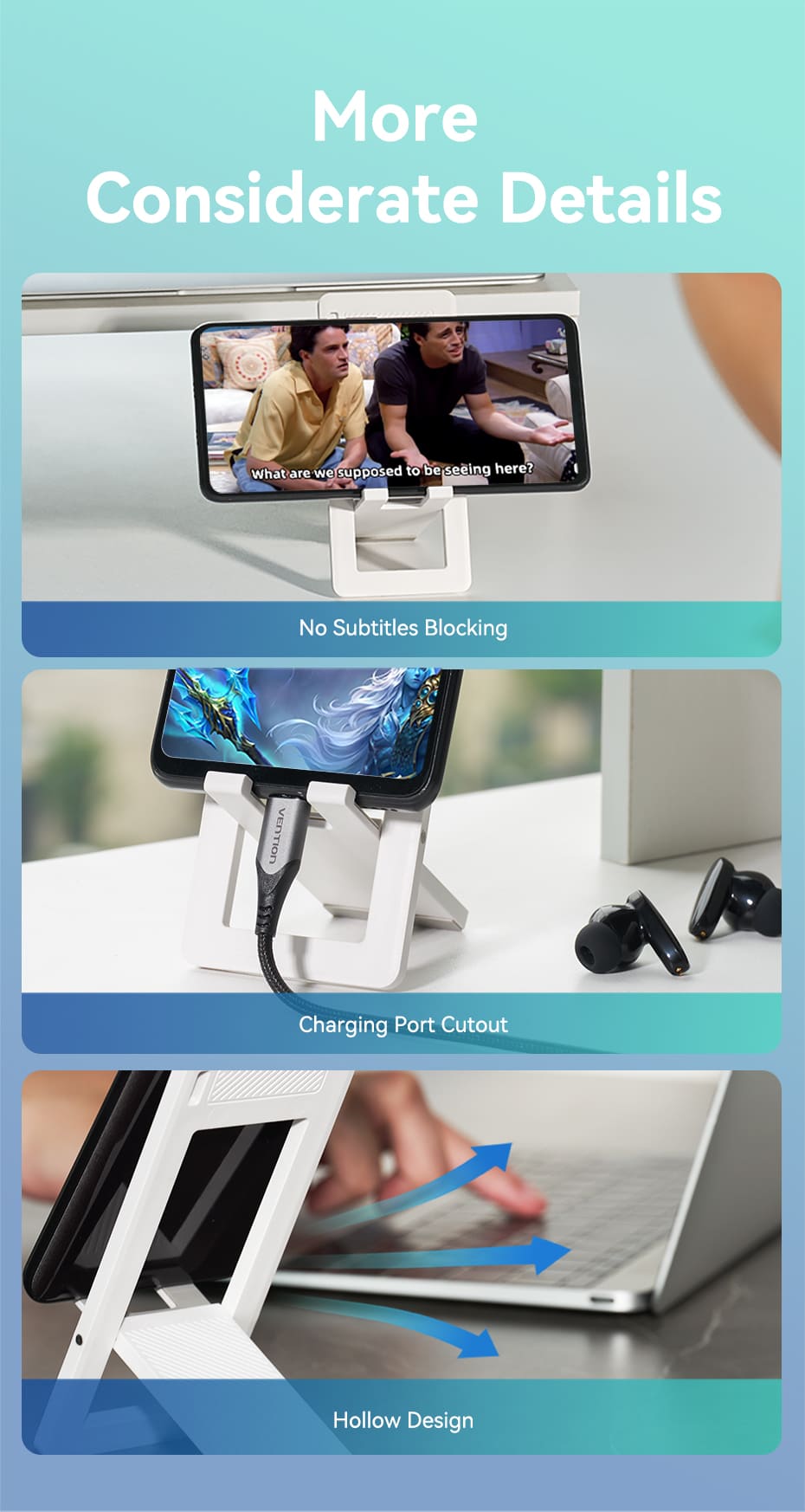 Compatible with all major smartphone brands such as Apple, Samsung, Huawei, and more, the Vention KSHWO phone stand is a must-have for home, office, or travel use.