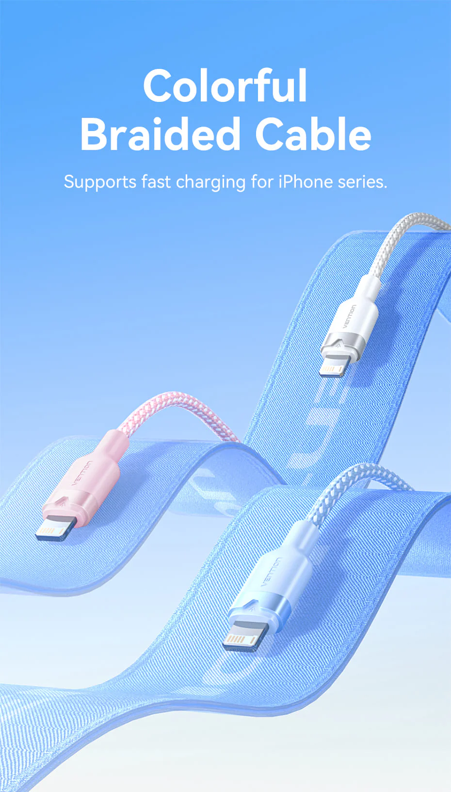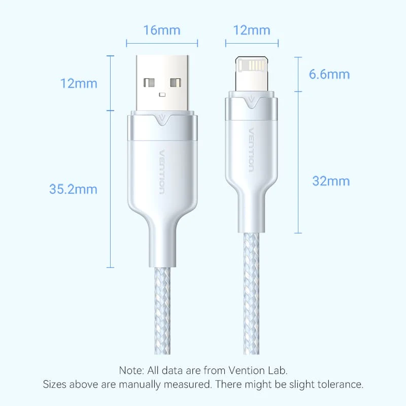 Available in multiple colors (Black, White, Blue, Pink) and lengths (1m, 2m), this cable combines style and functionality. Whether you need a compact cable for on-the-go use or a longer one for home or office, the Vention USB 2.0 Type-A to Lightning cable has you covered.