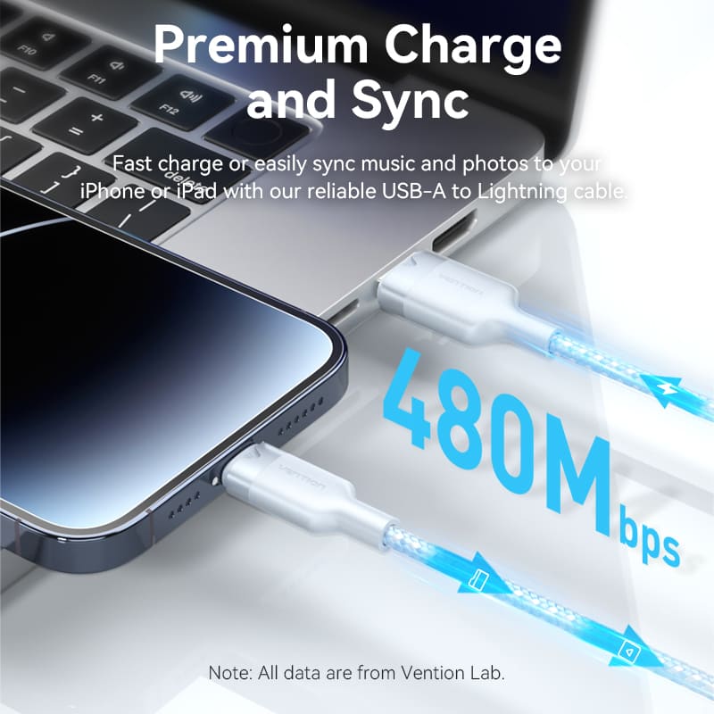 VENTION LANWF USB 2.0 Type-A Male to Lightning Male 2.4A Cable – Durable Nylon Braided, Fast Charging & Data Sync Cable for iPhone, iPad, and iPod (1 Meter) White