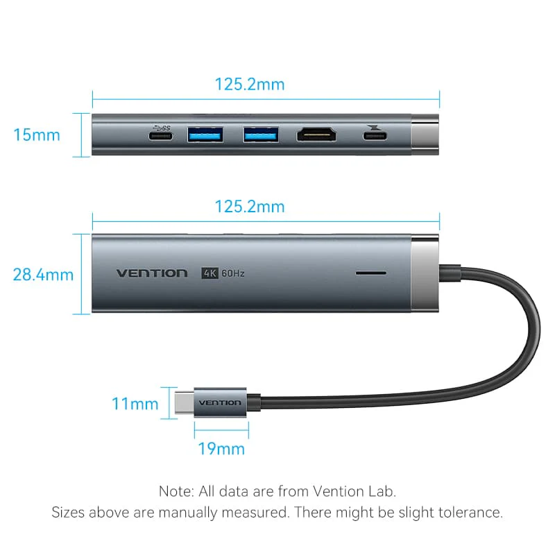 VENTION TGNHB 6-in-1 USB-C 3.2 Gen1 Docking Station – 4K@60Hz HDMI, 100W PD Charging, 5Gbps USB 3.0, Gigabit Ethernet for MacBook Pro, Dell XPS, iPad Pro, Galaxy S24, OTG Supported (Gray)