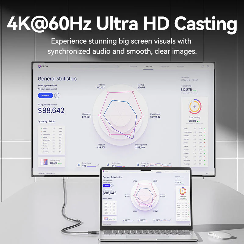 Enjoy 4K@60Hz high-resolution video output, making it ideal for extending USB-C connections for monitors, laptops, and docking stations. The nylon-braided design adds extra durability, preventing tangles and enhancing lifespan. A premium aluminum alloy shell provides excellent heat dissipation and longevity, while nickel-plated connectors ensure stable signal transmission.
