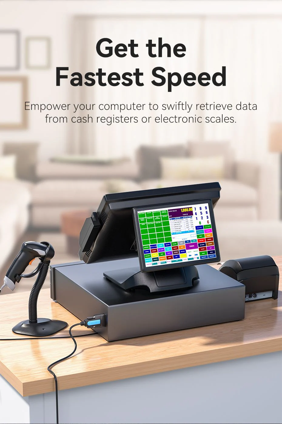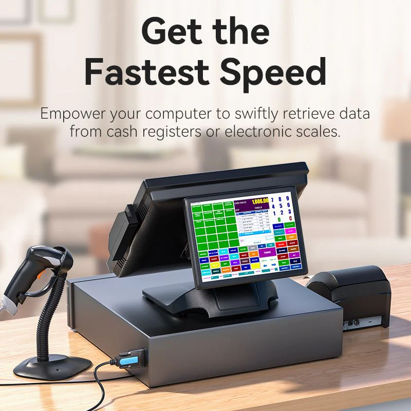 It supports barcode scanners, CNC machines, industrial equipment, modems, POS systems, and other RS232 devices. -