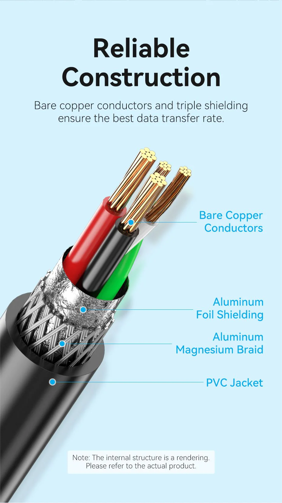 With a 480Mbps data transfer rate, this adapter ensures smooth, lag-free communication without signal loss. The gold-plated DB9 connector offers enhanced durability and corrosion resistance, ensuring long-lasting performance. The bare copper conductor and aluminum foil + metal braid shielding minimize interference for stable and reliable data transmission.