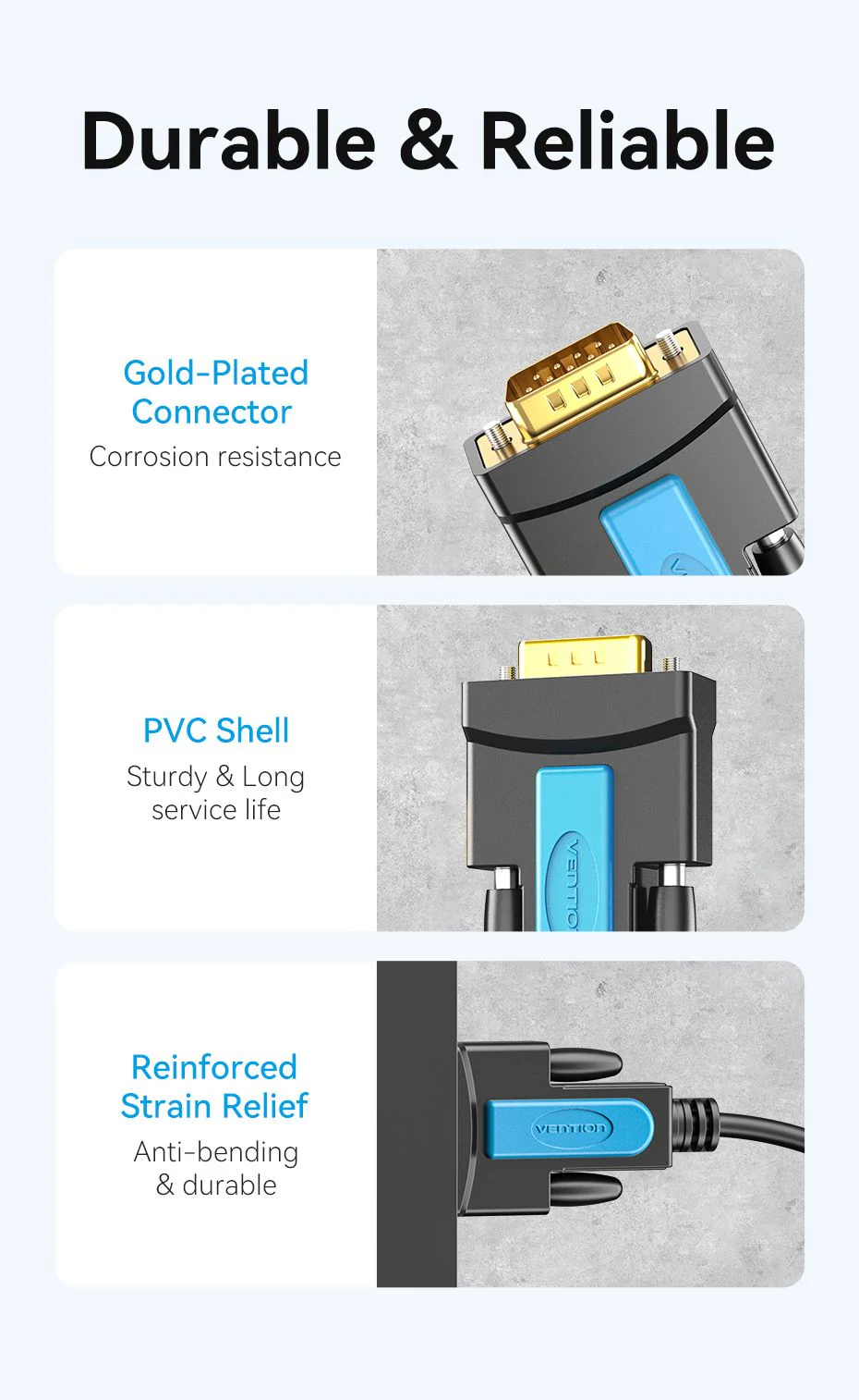 VENTION VAS-C02-B200 USB to Serial RS232 DB9 Adapter Cable (2M) – Gold Platted Connector – Industrial-Grade, Lag-Free & Wide Compatibility